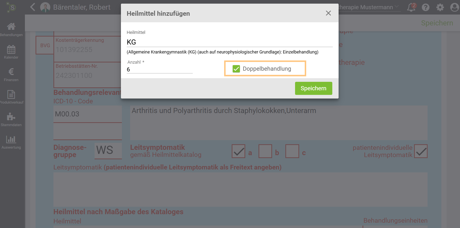 Das kannst Du bei allen Heilmitteln ankreuzen, sodass Du flexibel Doppelbehandlungen hinterlegen kannst.