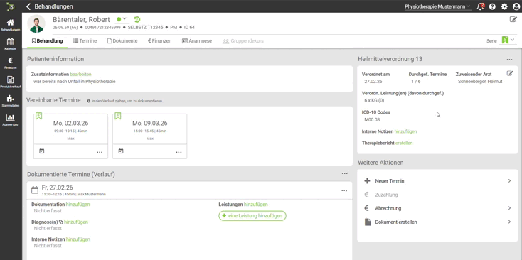 Im Verlaufstermin kannst Du nun die Leistung entsprechend hinterlegen.